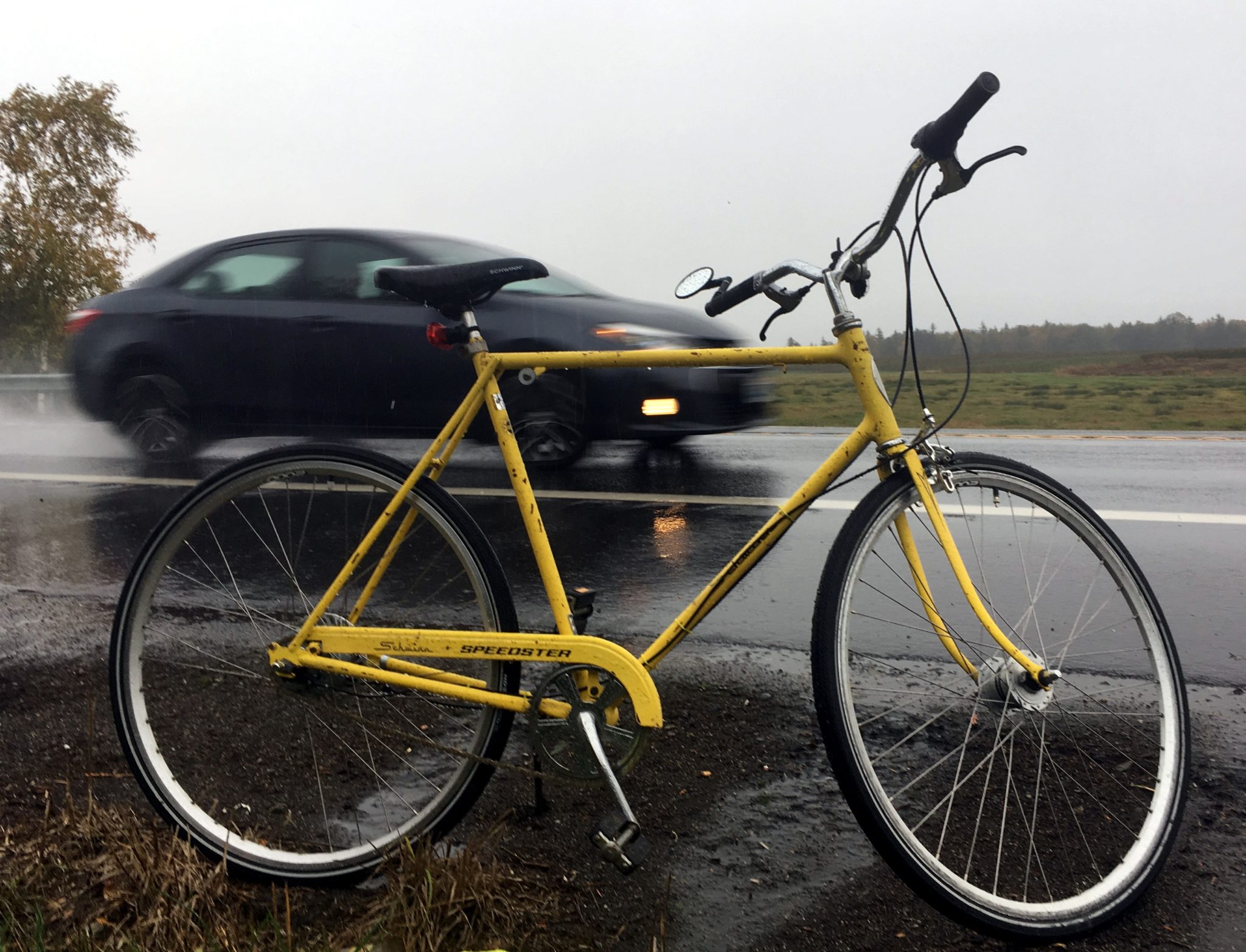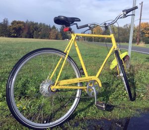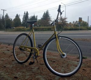 My ride today was my old Schwinn Speedster, retro modded with Shimano Nexus 8 and modern wheels. Still a boat anchor, but with gears. No fenders, fun in the rain.