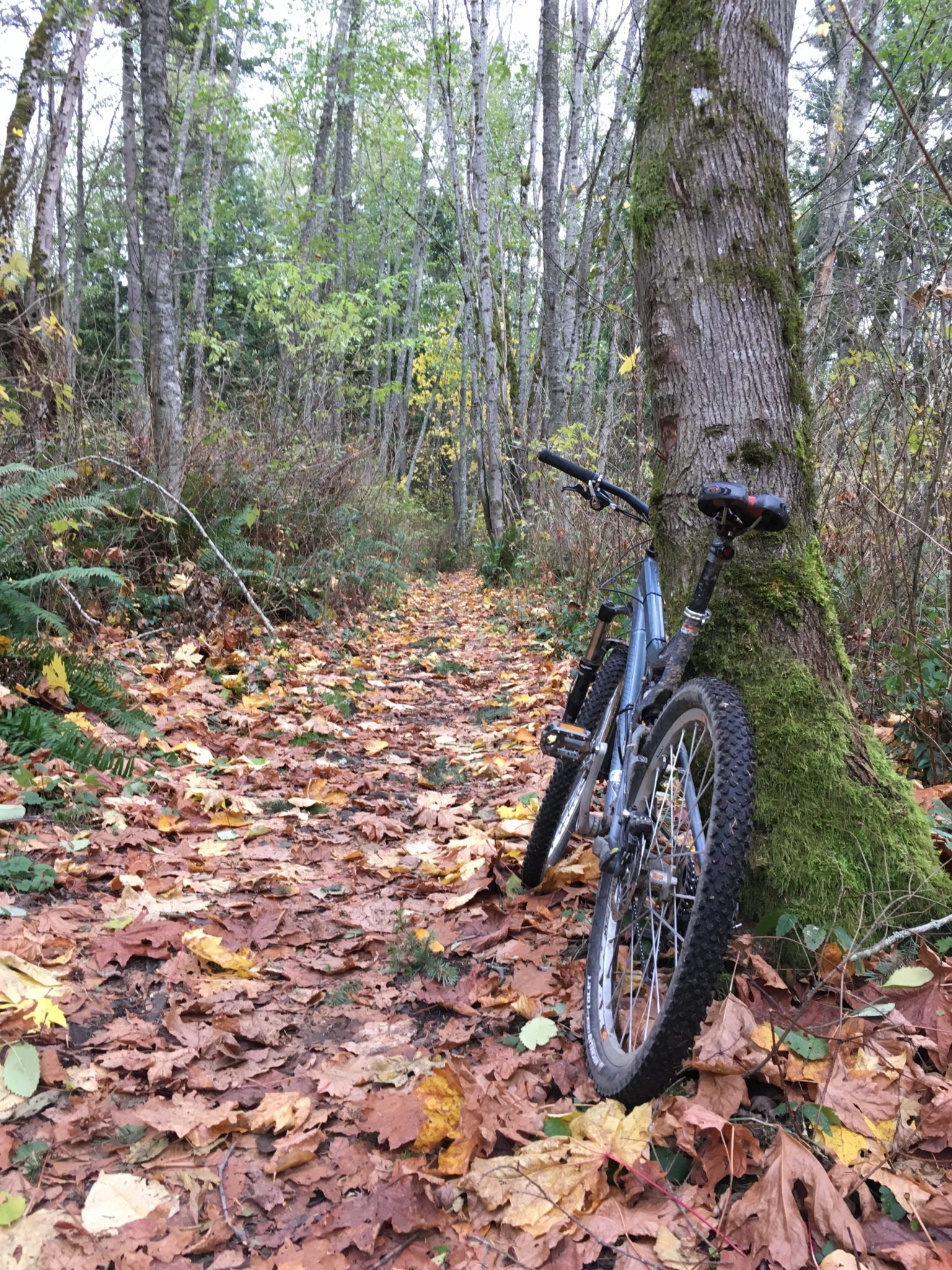 Jap Gulch was now Japanese Gulch, a real thing. Real, as in trailheads, community gardens, even a dog park at the lower end. But still not so real, as in no trail map nor markings that I could see in the few miles I rode. I was riding along leafy, rooted, rutted trails through unmarked intersection after unmarked intersection. It was like I remembered in the way back machine. There was even that stair stepped rooted section that I think maybe I might have a vague recollection of riding/crashing on. I rode for a mile or so on trails which I had no idea if they were old or new because nothing was marked and most everything was covered in big fall leaves. It was great.