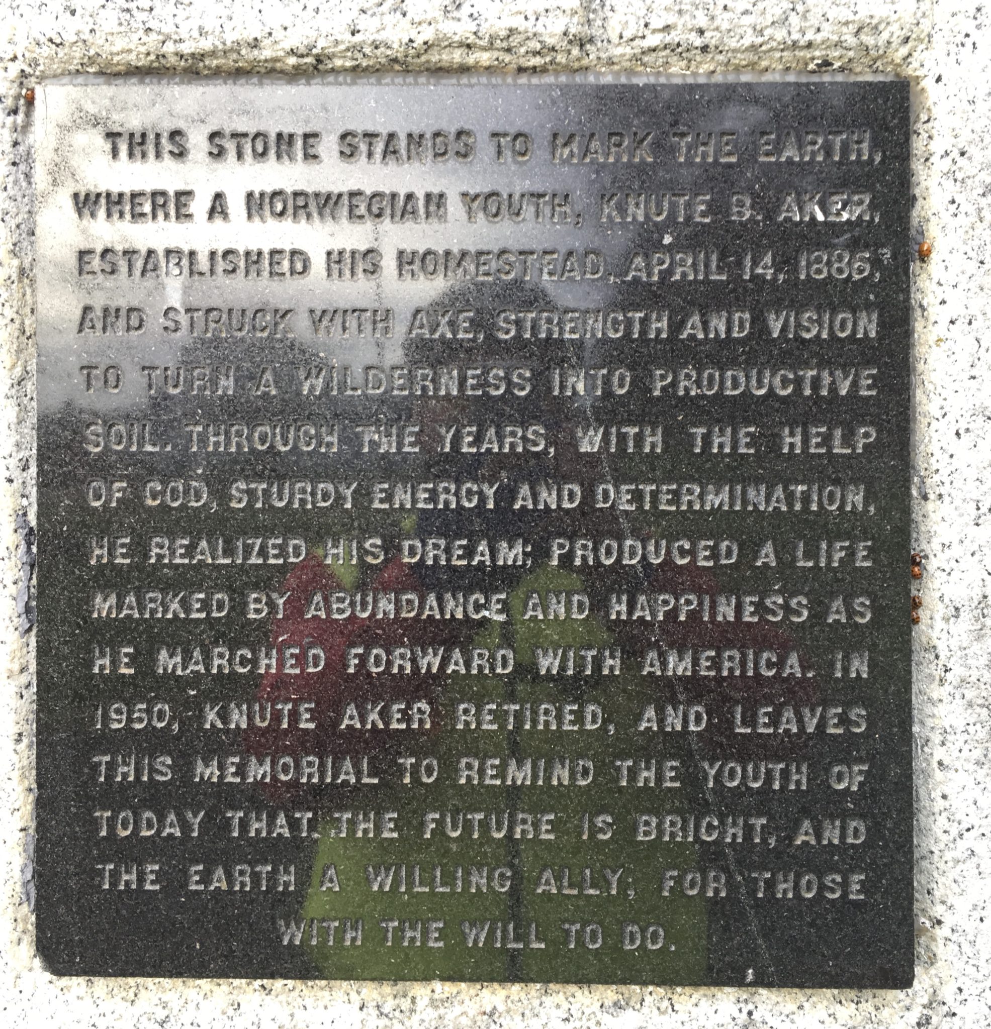 I just read it and thought about what an amazing person this Knute B. Aker must have been. What an inciteful, grateful, hardworking and God loving man this must have been and what a great message he left for us. I didn’t really feel ashamed that I had never stopped in, it was more of a disappointed that I had gone so many years riding by and never stopped in and that I had missed that message for so long. I can say that I will never ride by it again without thinking about Knute Aker. And I will always be thinking about this particular time I rode this loop and how we need less signs like the losers and more monuments with real positive messages.