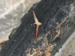 Puncture resistance is always a question when it comes to tires so I should comment on the one incident I did have on these tires. Maybe incident is a little strong? First, I think the Hurricanes come in a couple of levels of puncture resistance and though I can’t remember the names, I am sure my tires are the least protected because they were a silly bargain at Chain Reaction Cycles. Even so, I’ve got several hundred miles on them and have had just one puncture. Even that puncture did not leave me on the trail/road fixing a flat. In fact, I didn’t even know I had a thorn until I did my post ride tire check at home. There was an obvious giant thorn, but the tire was still holding at least 60psi and likely had been doing so for at least the last 30 minutes of riding. The thorn was about ¾” long and the tire didn’t lose pressure until I removed it with pliers.