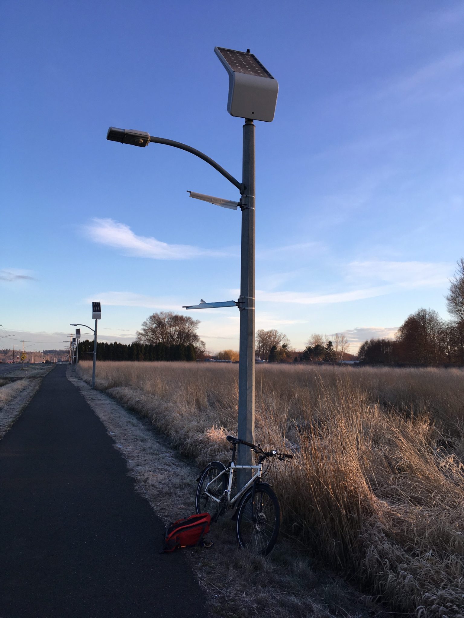After crossing the bridge at the Nooksack River, look left and you will see the trail that leads north along the river and to Hovander Park. The trail at this south end is pretty sketchy due to flooding, so have fun and maybe don’t crash. Again, watch out at Slater Rd. I took the obvious path under the bridge this time rather than cross traffic on the road. Then continue on the nicely groomed path through Hovander back into Ferndale. Go across the bridge, down Riverwalk Park and you’ll be done.