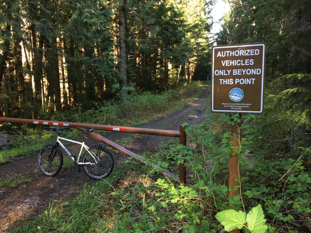 Lastly, for the challenges of this route, you need to get up pretty darn early because I am not really certain of the legality of riding the first part of the Wickersham Truck Trail from the Hwy 9 side, so I try to hit this before the chickens wake. Yesterday I was pedaling away from Whatcom Falls Park a bit before 5:00 am. It seems like this road is/should be open for hiking and biking because the signs are about being off limits to motorized vehicles, but there are also a lot of No Trespass signs, but they seem to be aimed at keeping you from venturing off the road. Google Maps will route this as a hike or a bike ride, but not as a drive in a car so maybe they know something of the overall legality? I don’t really know and I can’t tell you that it’s okay to do, only that I’ve done it twice now and haven’t had an issue.