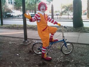 **After work Update** – Almost 12 miles on this bike today and my takeaway is that Raleigh made a deceptively nice bike. It looks small and precarious, but it rides like any other bike. At a recreation level of riding, it was easy to ride with my coworkers who were on much larger, much newer and much more expensive bikes. I was also impressed with the efficiency of this small wheeled bike. There was no real difference in time, max speed, or overall ride-ability on this bike versus any of the other bikes that I regularly ride to and from work. If only I could get the circus music out of my head…