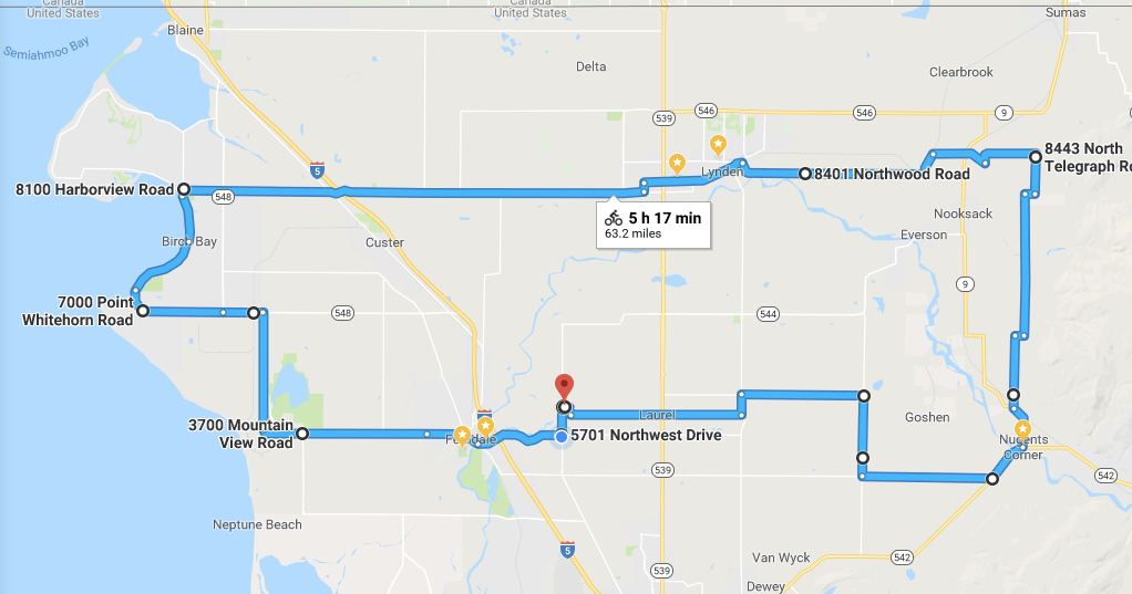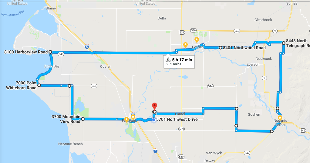 July 1st. That’d make the Tour de Whatcom only 3 weeks away. Am I ready? Not quite, but close. I logged 60 miles again today, including fixing a flat in Lynden, and still felt ok when I got home. Perhaps even a little less stiff than I was after last weekend’s ride of similar distance. The flat was what it was and it wasn’t something that I could have avoided mostly since the tire appears to have held air for awhile so I have no idea where exactly it was that I picked up the microscopic piece of wire and the wire was, as I said, microscopic so there is no chance that I would have seen it while riding.