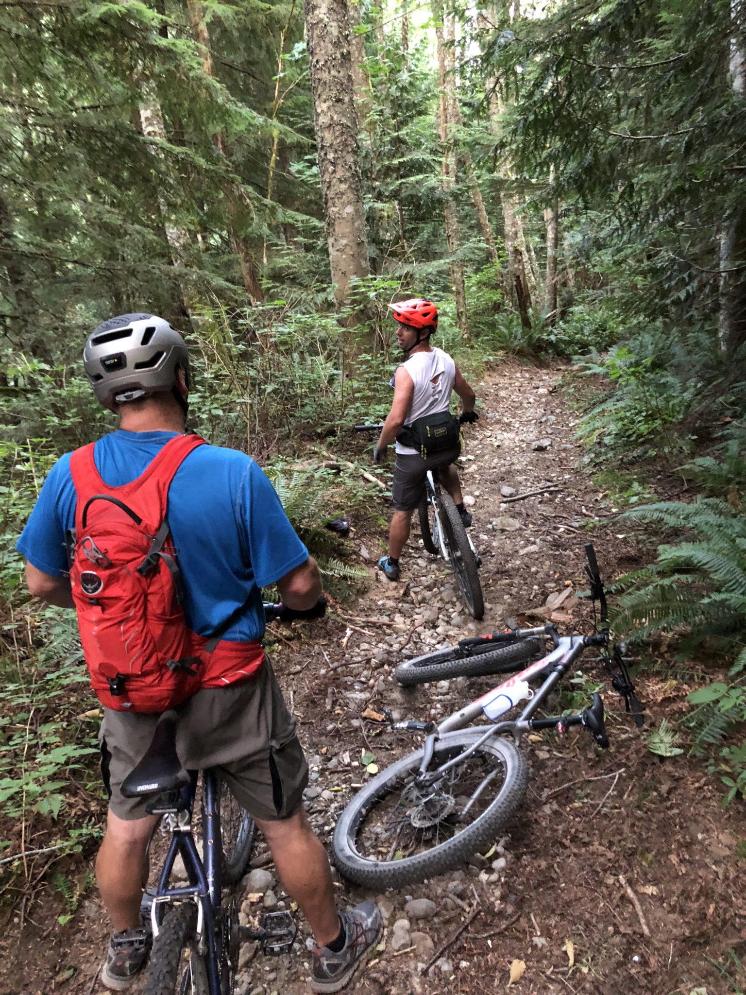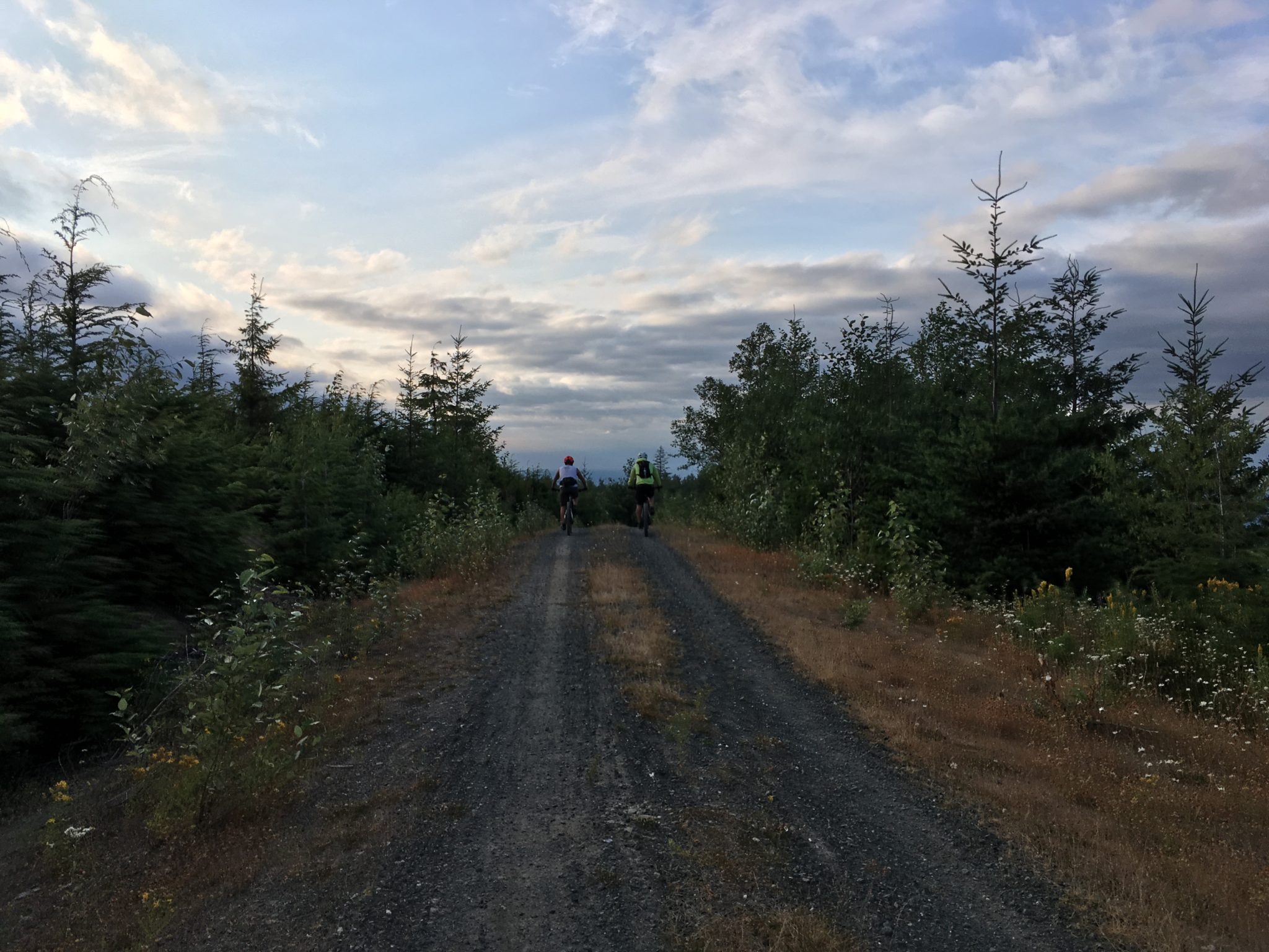 Got in a mostly off pavement loop ride mid-week with a couple of adventurous type guys from work. We had been talking about Kurtis’ new Salsa Timberjack and adventure rides like the Olympic Discovery Trail and just adventure riding in general, when the discussion turned to how both Jason and I had contemplated a loop in the North Lake Whatcom area. This in the area that I had been binging on after completing my own Tour de Lake Whatcom in that area. The loop we both had in mind was one that would connect the Y-Road, North Shore drive, Wickersham Truck Trail and a series of gravel roads along the Stewart Mountain ridge line back to the Y Road. We had both laid out a route in gaiagps so we compared notes, then set a date the following week for all three of us to do the loop after work. Even though individually we had been on various parts of this loop, there were several sections that none of us had travelled at all plus the hugish elevation gain made the after work time slot a bit sketchy. However, instead of being completely sensible by putting the ride off until a weekend we decided to just bring along headlamps. Boom, done ready to go.