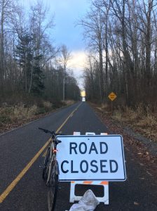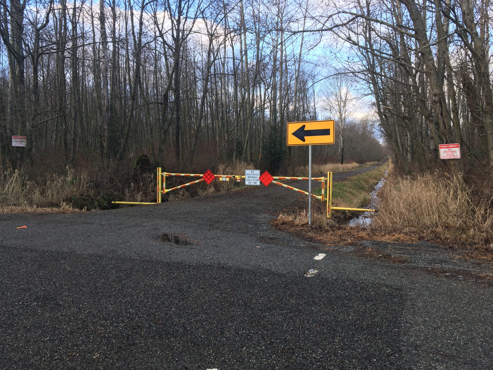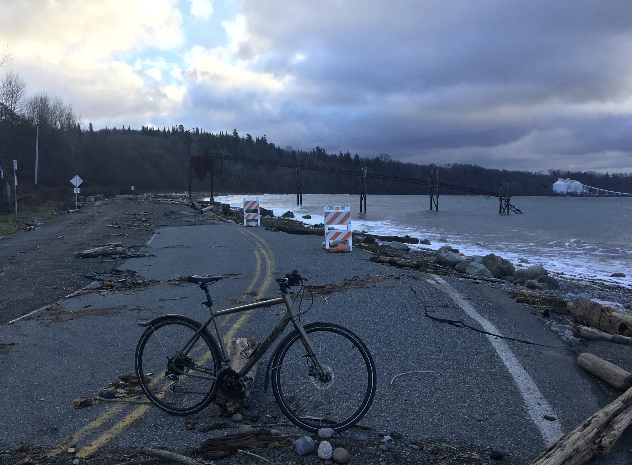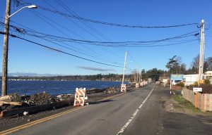 I continued to ride east on this mossy green section of Aldergrove before turning south on Gulf Road and then going through the final gate as I hit Lonseth Rd. From there it as an easy coast down Gulf Road to Boulder Beach. Though there were no more gates here on this public section of road, the road was in fact still closed due to some roadway damage from our recent bout of high winds. BTW, as you can see in the pictures, Birch Bay drive was a little worse for wear after the same high winds but was still open enough to ride without issue.
