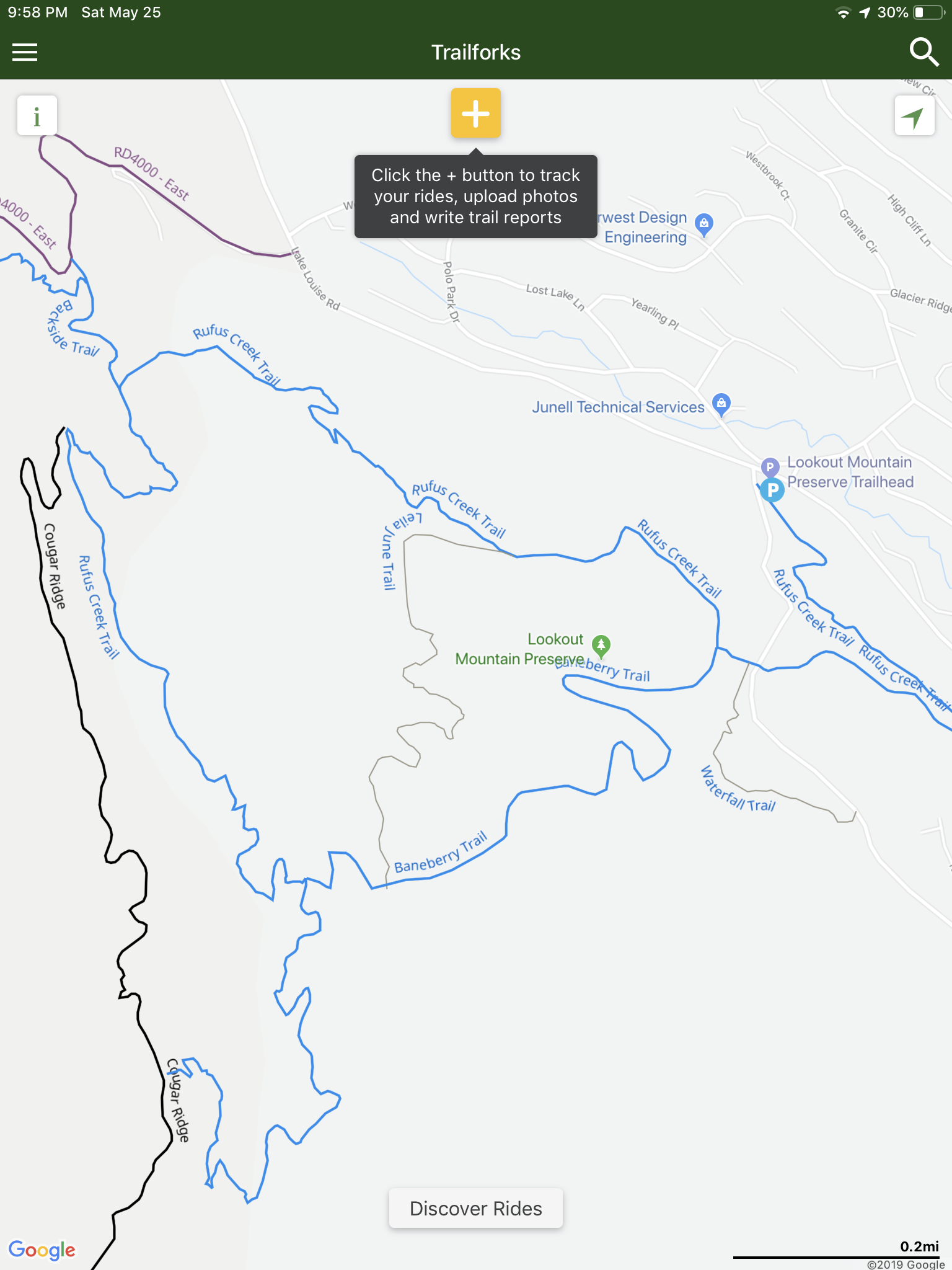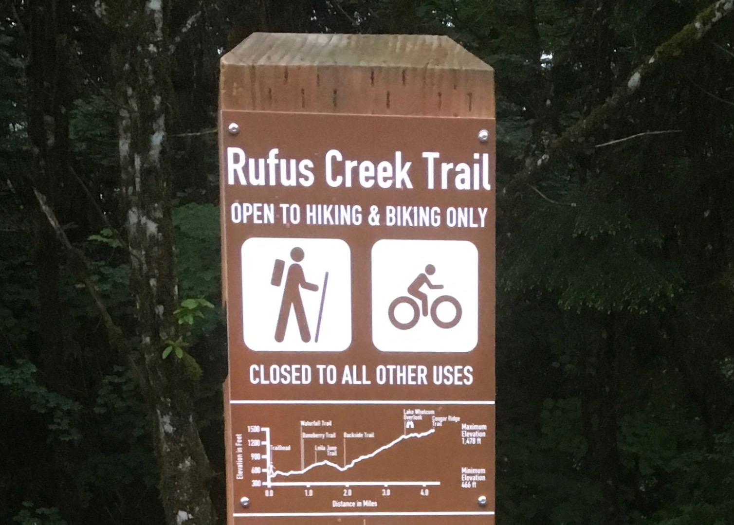 Last weekend I rode Rufus Trail, a trail that was suggested by a coworker as a really nice climbing trail in the Lookout Mountain area. The trail leads from the parking lot on Lake Louise Road, across from one of the Sudden Valley gates. It’s a lot that I’ve parked in several time, I just have only hiked or hike-a-biked up the road to one of the Lookout Mountain towers. At one point I tried going on some trails that led to the Waterfall, but there were so many limbs and trees over the trails at the time, that I just never ended up going back. Silly me.