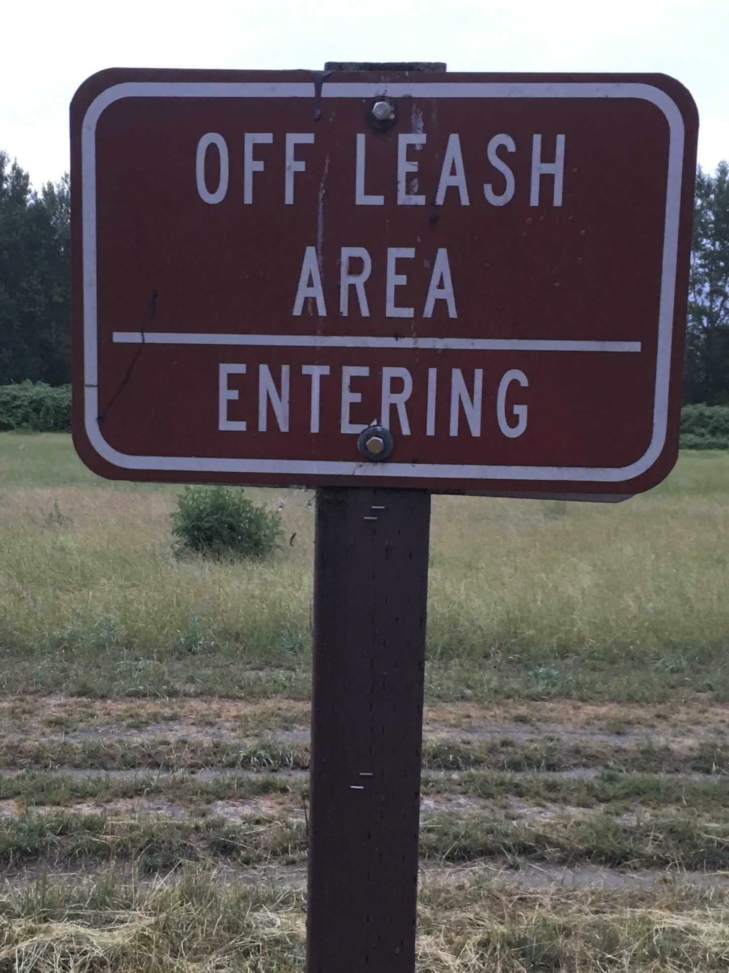 The point of an off-leash dog park is that they allow dogs to freely interact with other dogs, and with dog people bound only by dog rules and dog behavior. At Hovander off-leash area that may mean a running game of dog tag, chasing birds and rabbits, splashing in the river, and chasing a ball thrown for another dog. It’s a beautiful happy thing to watch dogs racing around having fun with each other. And it is all fun and games until things turn ugly, as they occasionally do. The thing about the ugly is though, that I can’t recall things ever turning ugly just between dogs. The ugly things usually are ugly because people are involved, people to people, or people trying to manage other people’s dogs, and most often in my experience, the ugly happens when someone keeps a leash on has their dog, while other dogs in the off-leash area are running around…you know, off leash.
