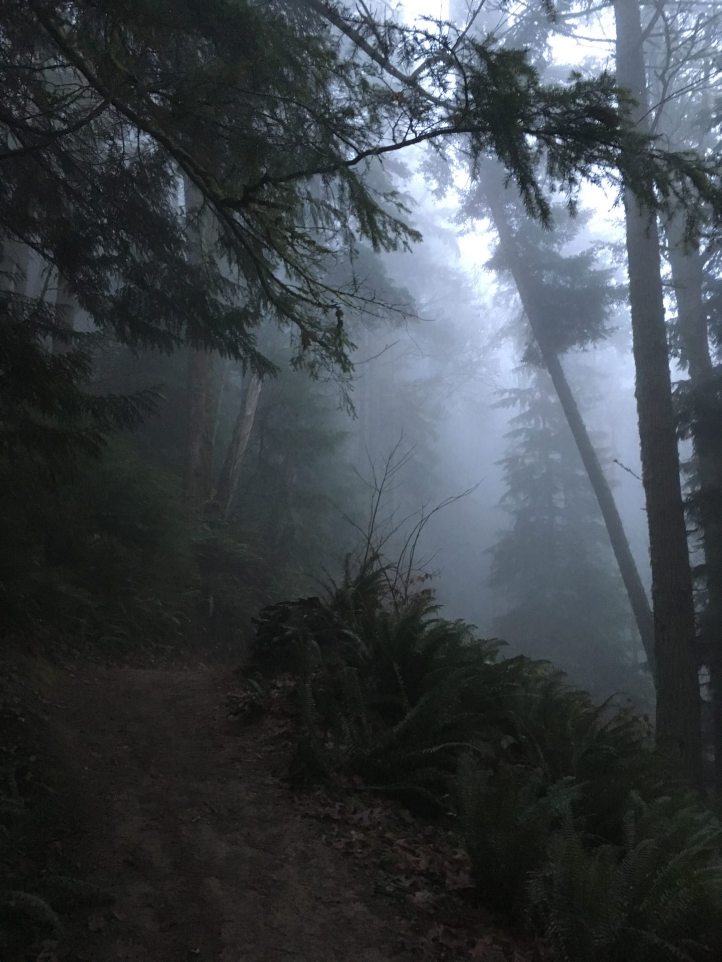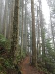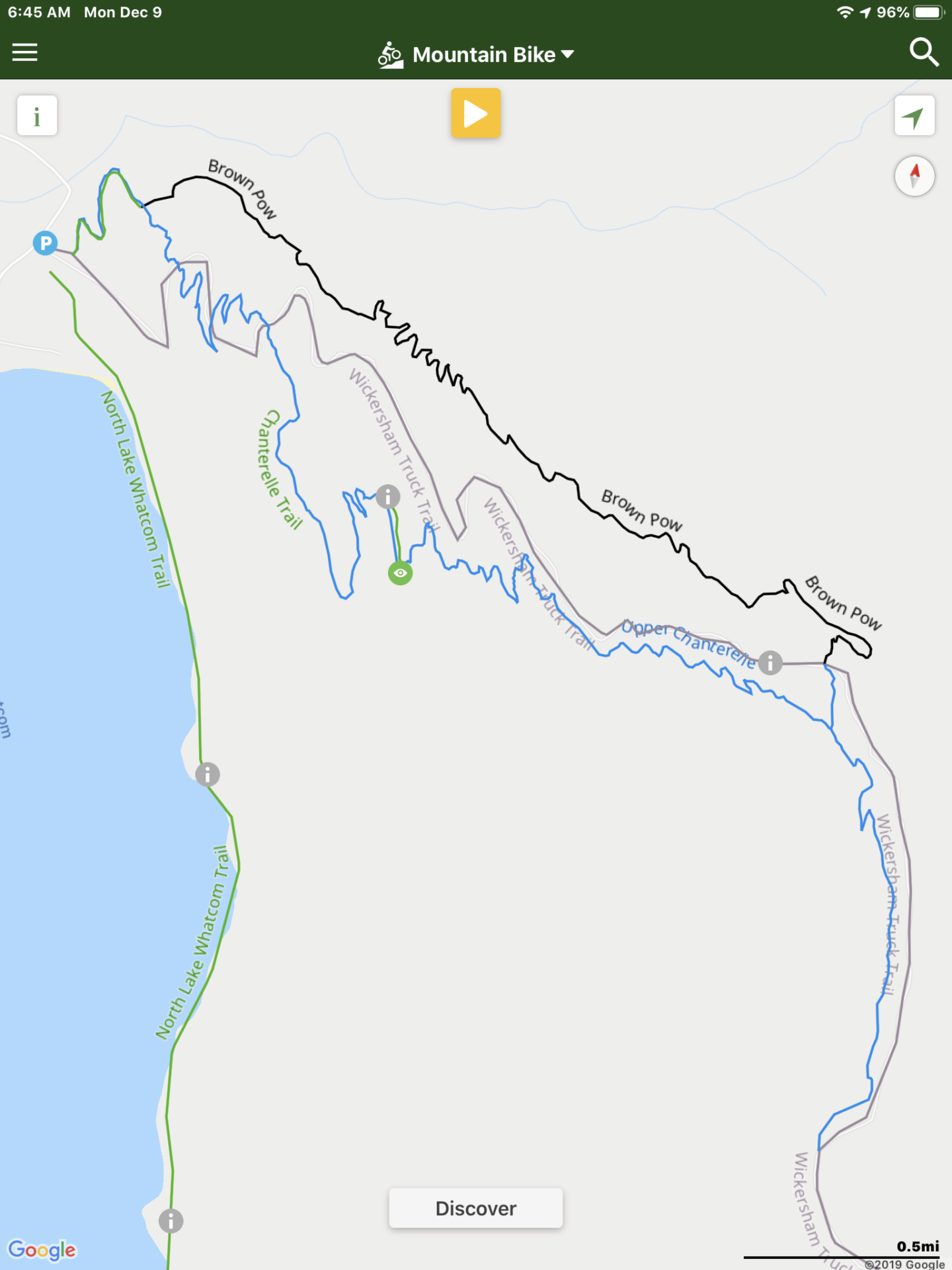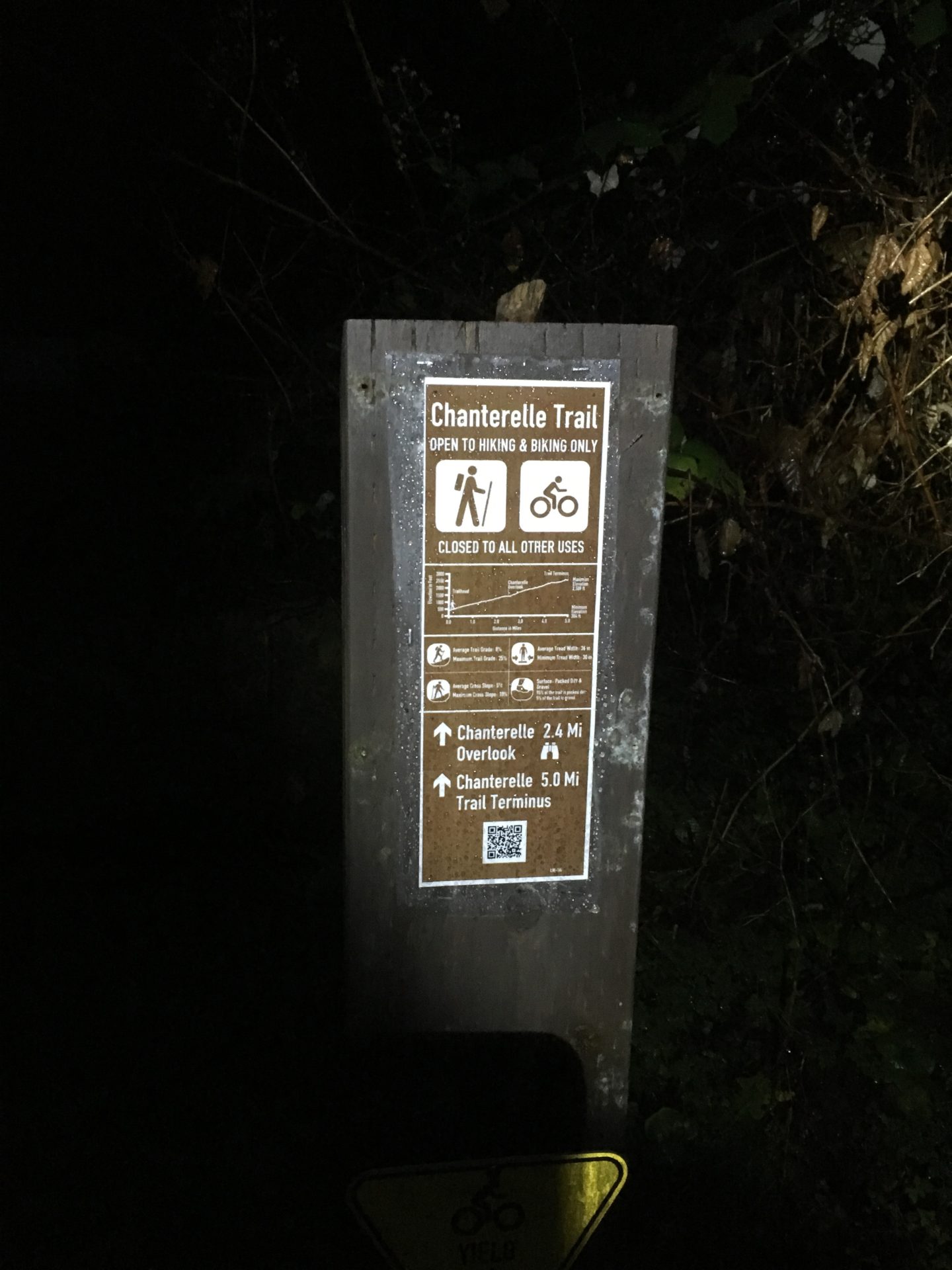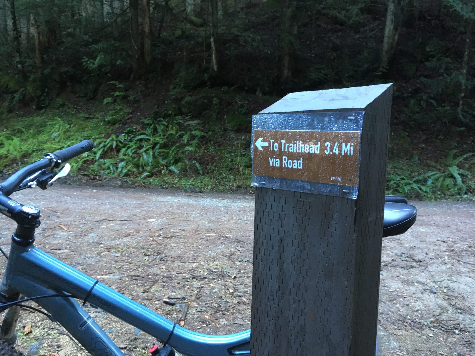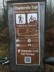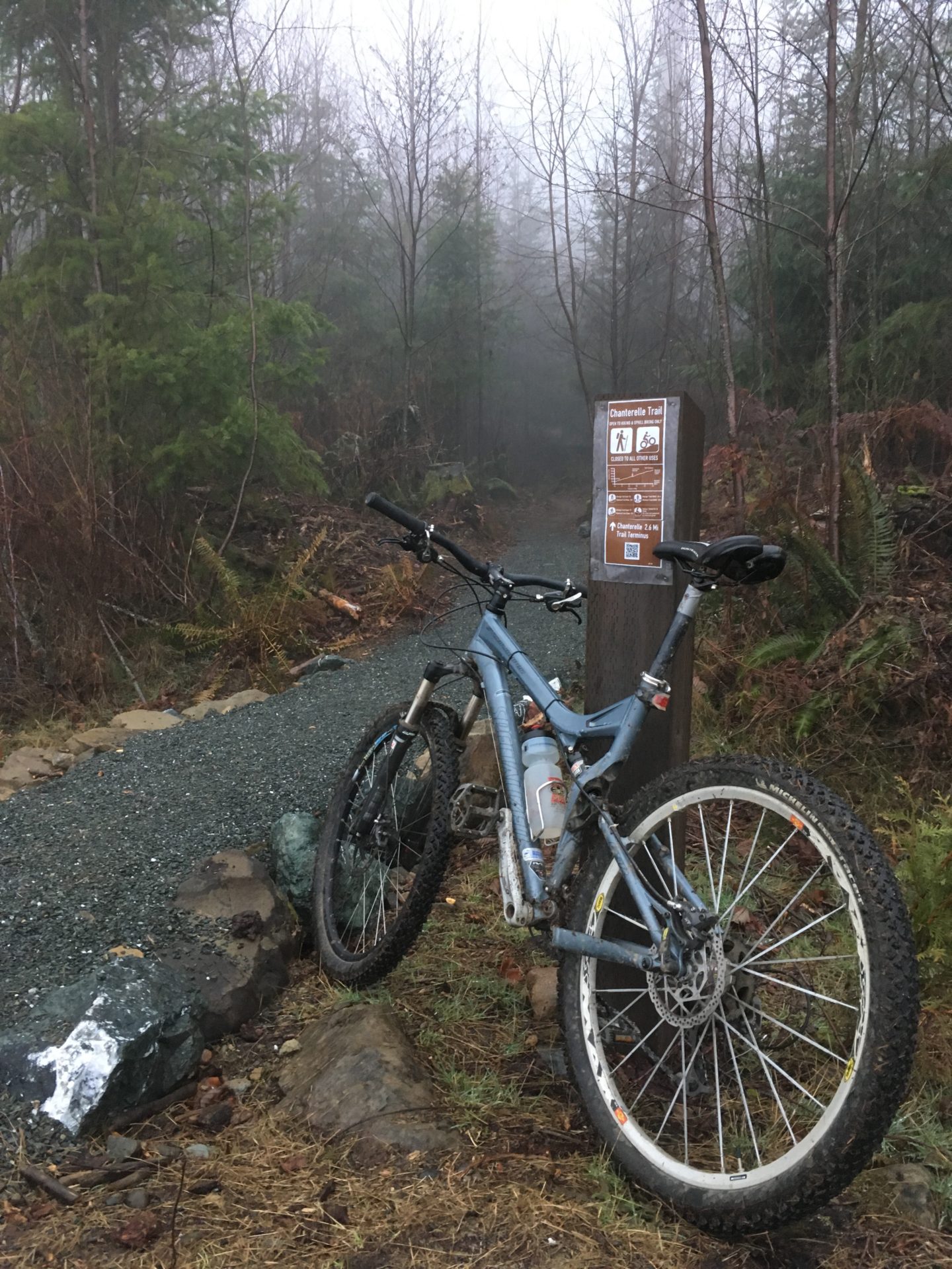 I’m talking trails, not mushrooms. Don’t know, maybe there are mushrooms there too, in addition to the trails. The trails or trail are out of the Lake Whatcom Park out at the end of the North Shore Road. I’ve ridden and hiked the Chantrelle Trail several times, but this recent trip was a treat because the trail has been extended past the overlook, essentially doubling the length of the trail. What was the 2 mile Chantrelle Trail leading up to the overlook has become the Lower Chantrelle, Upper Chantrelle, and Top Portion of Chantrelle. One 4 mile long climbing trail that leads up to the Wickersham, intersecting that trail/road on the flat section just before the gate at the power line, near the burned out car wreck.