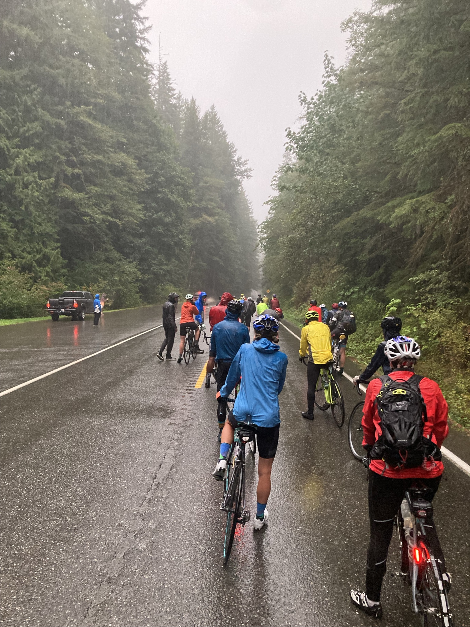 Well there we go, another wet Mt. Baker Hill Climbs, that’s 2 out of 3 for me. 2018 was mostly cold but clear with beautiful views. 2019 was wet riding in a cloud with almost no visibility. Then this year was just raining, raining, and more raining with views of rain. However, the ride was, as in there was a 2021 ride, not another in a long line of Covid cancelled events. Sure, maybe there was rain dripping down my neck at the starting line, but I was still happy about riding in the rain and I would happily do it again next year. Maybe we can have a little snow in 2022 just to round out things out in the weather department?