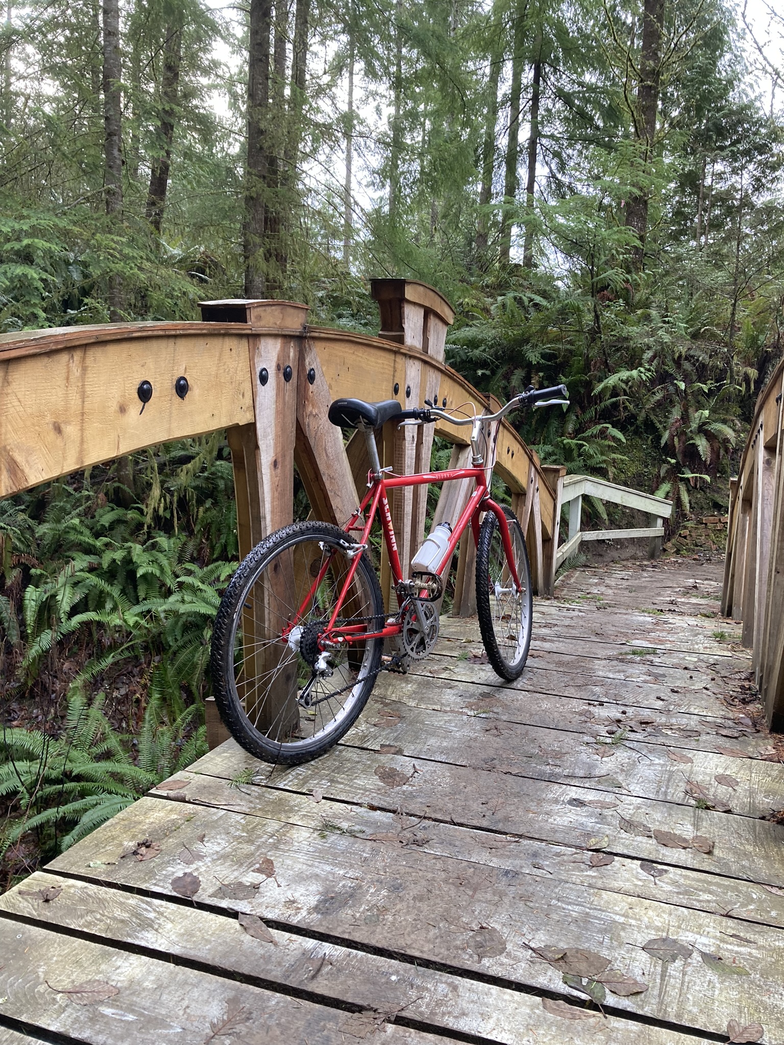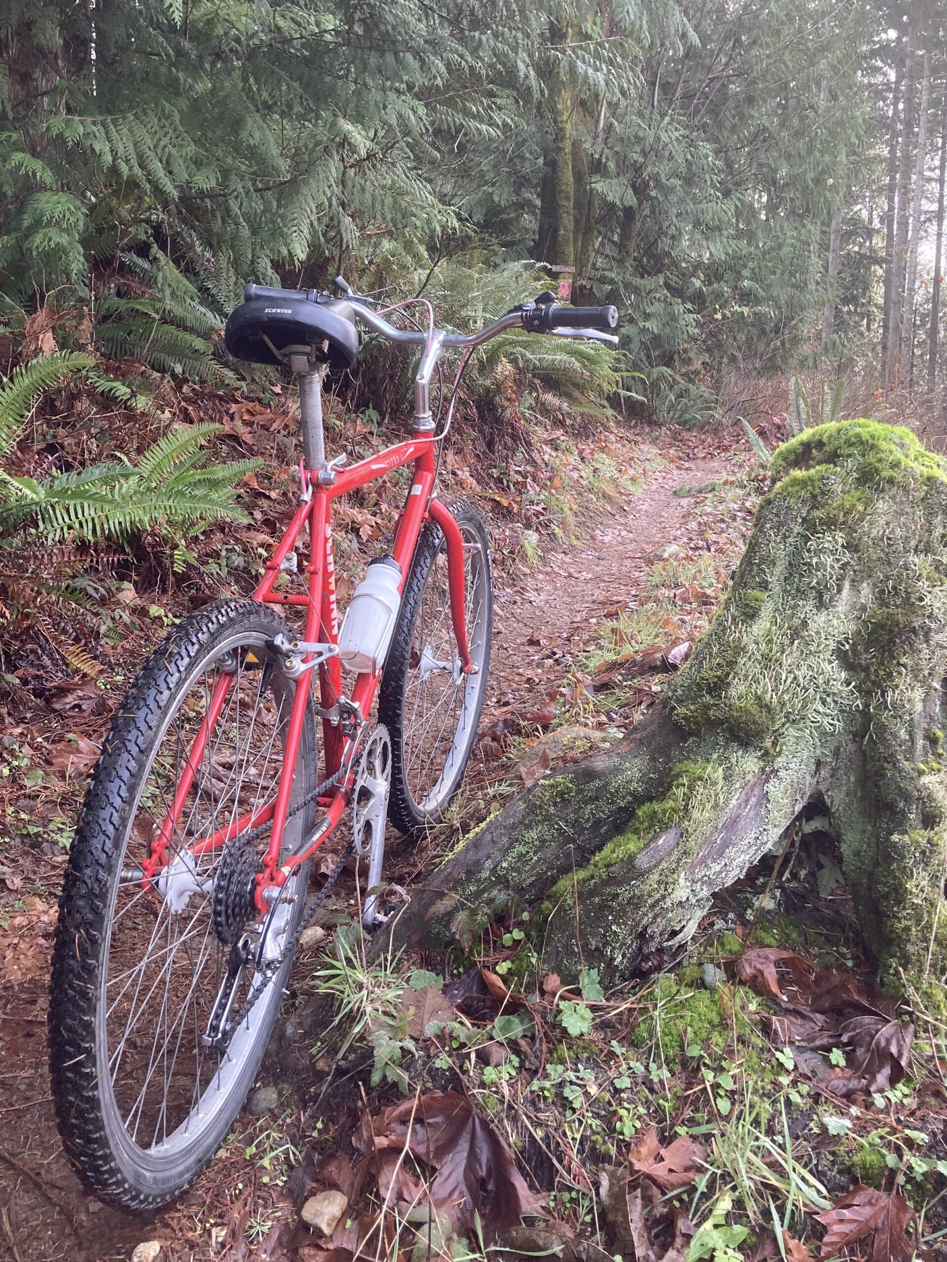 I know that I am not really demanding when it comes to trail riding, but this bike did everything I needed it to do with little to no fuss. As I said, I felt like riding so I hit the low part of Galbraith climbing all three of the Pigs before heading over and down Mullet before doing all of the bunny trails. I had fun. The wet brakes did a good enough job stopping. The indexed shifting shifted. The Dirtsters gripped. Well that’s done, not sure what to do with it now.