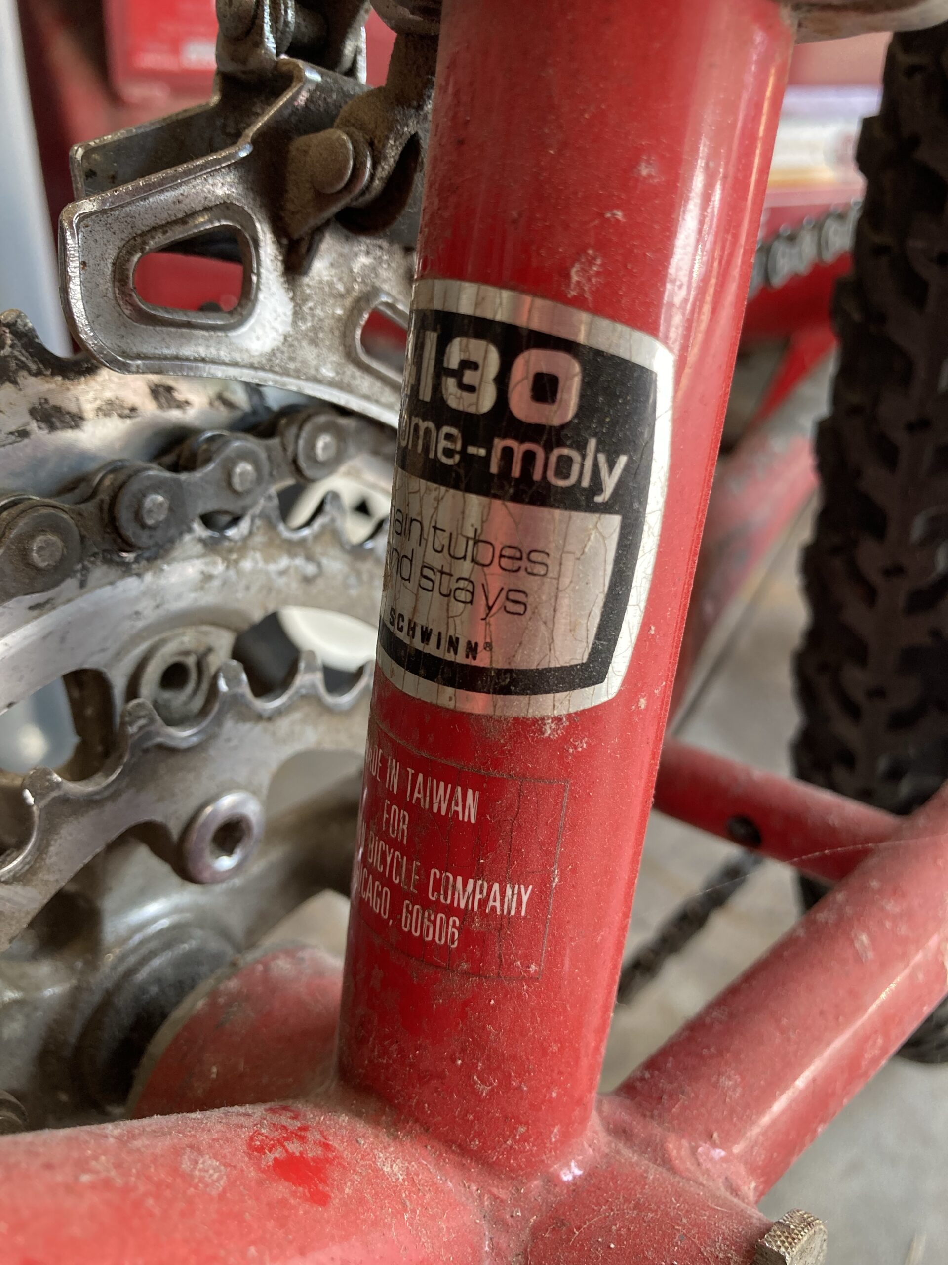 After getting the Sierra home I gave it a once over before goin online to see just what I had. I noticed the use of 4130 Chrome-Moly tubing which pointed to this being more than a boat anchor. I noticed a little sticker near the derailleur that read “Schw App GIANT” which meant that the Sierra’s frame was made by Giant just before Schwinn abandoned Giant and went to China to save money. I’ve read that Schwinn’s move to China left Giant tooled up and ready to expand their own line of bikes into the U.S. and European markets; which they did. (So is it that Schwinn made some really good bikes in the 1980’s or is it that Giant made some really good Schwinns in the 1980’s?)