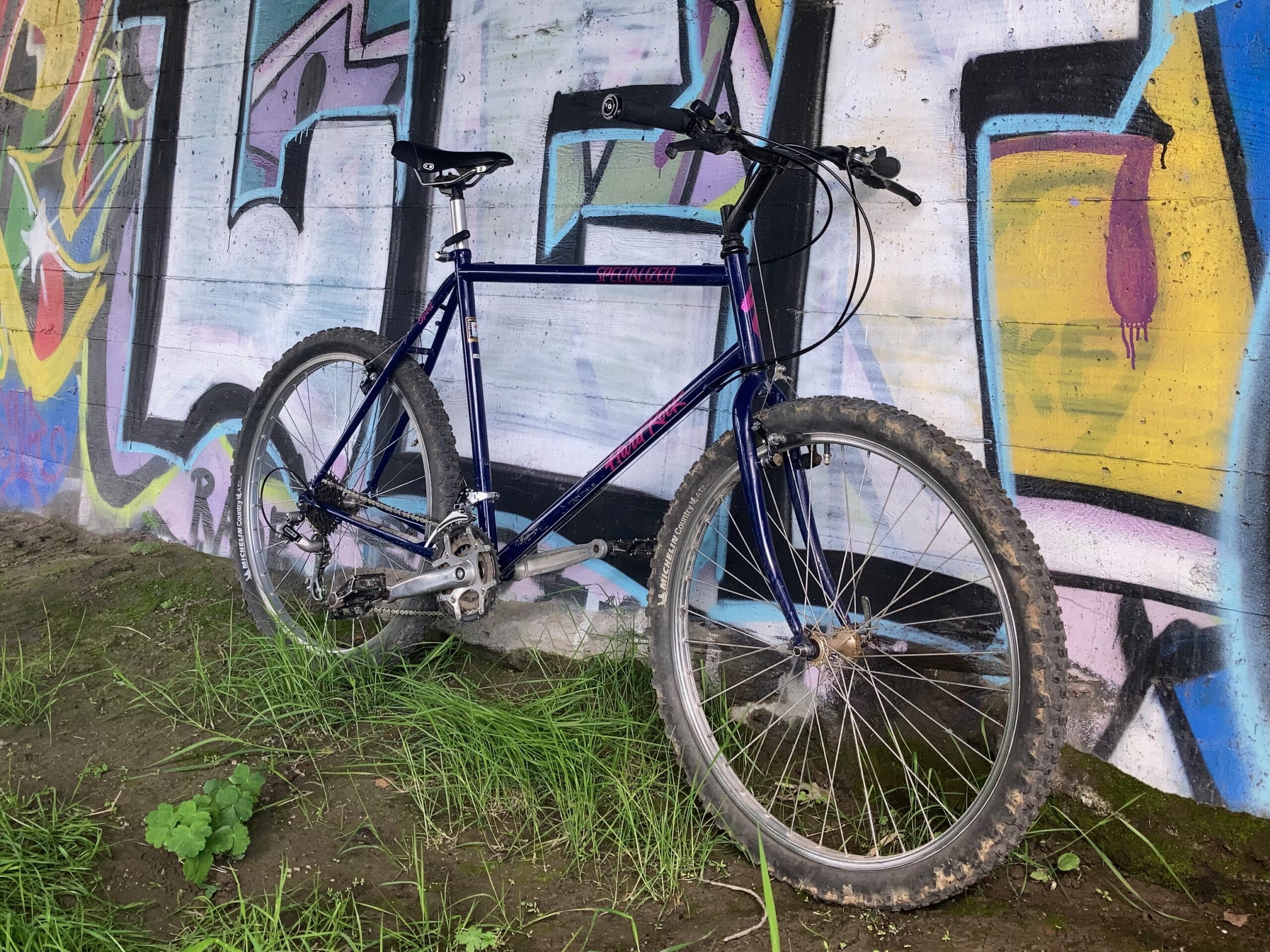 So this story goes that sometime way back in the early 90’s, this guy who had done a lot of road riding in his life decided, that he, with a couple of his friends, should try this new craze called mountain biking. That guy was me and I was dirt poor, but I knew enough about bikes to know that I had to go to a real bike shop. I can’t remember all the details but I am pretty sure this Specialized Hardrock was purchased at Gregg’s Bicycle store in Bellevue, WA. I couldn’t afford a Stumpjumper, nor apparently a better color scheme.