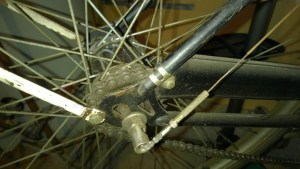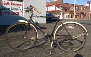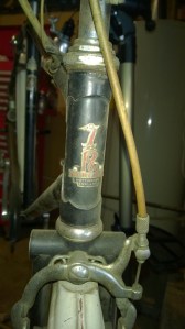 Back to mostly original and mostly unsafe condition. By today’s standard and the seat of my pants feeling all bikes from the 50’s were mostly unsafe. This particular bike has the infamous TCW 3-speed coaster brake hub in which the brake becomes non-existent should the shift cable get glitchy or the shifter get out of adjustment. Maybe if you’d recently had WWII on your doorstep, the occasional lack of brakes wouldn’t be so alarming. I live a safe secure life in the U.S. far from Hitler in both time and space, so the possibility of no brakes makes me uncomfortable.
